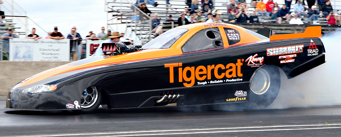 “We keep thinking we have it figured out, and we keep finding out we don’t,” says Germain, veteran driver of the Tigercat Top Alcohol Funny Car and a retired firefighter with the patience of Job. “You drive away from the race track Sunday and ask yourself, ‘What the hell did we do wrong?’ ”