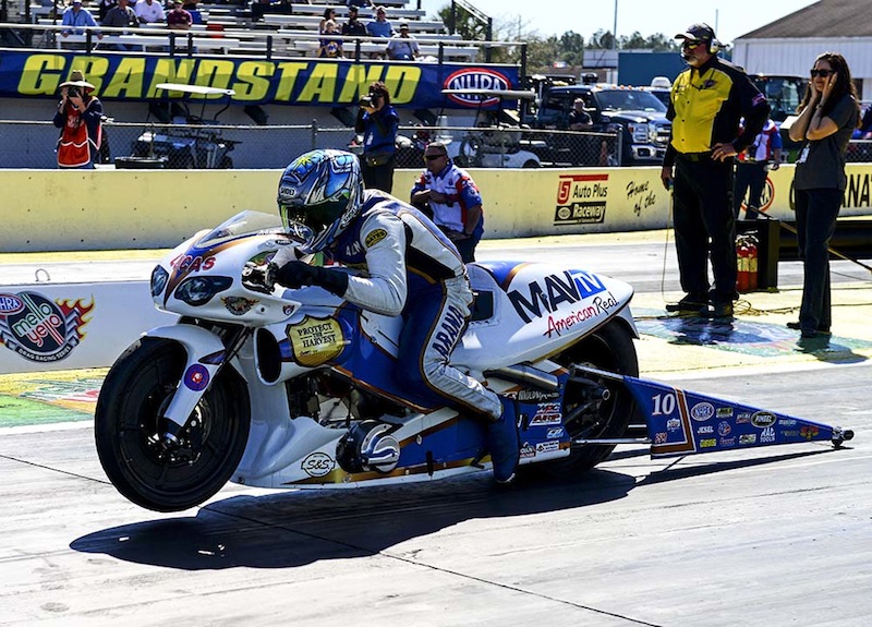 INDIANAPOLIS, IN – Improving with every pass he made throughout the weekend, Pro Stock Motorcycle rider Adam Arana