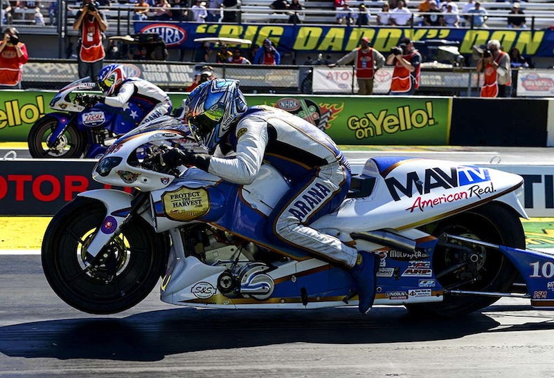 “I’m disappointed that we went out in the first round but who wouldn’t be,” Arana said. “The bike drifted towards the right, which didn’t help my speed at all. Because of that we’re going to make changes to the wheelie bar to make sure that it tracks straight.”