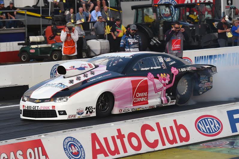 POMONA, CA – Owens Corning Pro Stock driver Rodger Brogdon continued to inch toward the top of the Pro Stock ladder after making
