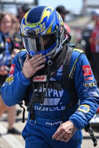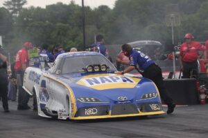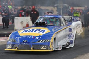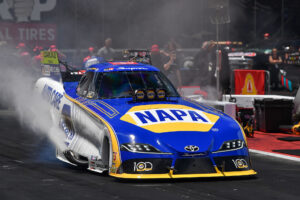 In the first qualifying session, Capps expertly piloted the NAPA Auto Care Toyota GR Supra through a downpour near the finish line. After the NHRA Safety Safari dried and prepped the track, crew chief Dean “Guido” Antonelli found the right combination for track conditions and Capps launched his 12,000-horsepower Funny Car to the top half of the ladder with a run of 3.960 seconds at 324.51 mph, the second-fastest pass of the session.
