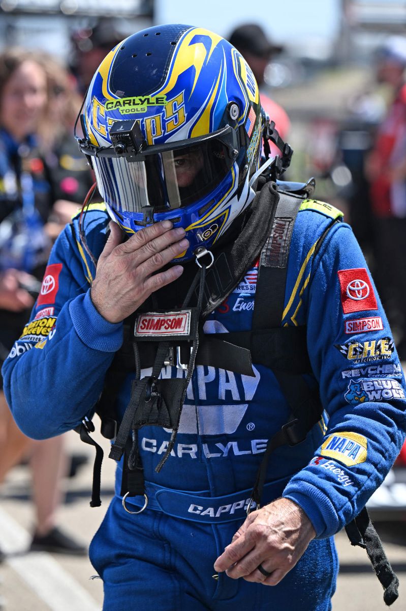 rolling at the American Rebel Light Beer Virginia NHRA Nationals. Instead, the three-time Funny Car world champion’s campaign ended in the second round at Virginia Motorsports Park. Driving the NAPA Auto Care Toyota GR Supra tuned by Dean ‘Guido’ Antonelli, Capps was aiming for back-to-back wins on the NHRA Mission Foods Drag Racing Series tour but came up short in a tough matchup with Daniel Wilkerson on Sunday.