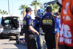 owner Shawn Reed was poised for a long day of going rounds on Sunday at the NHRA Nevada Nationals. A rare misstep in the first round of eliminations, however, caused the team to bow out early, and they will head to the season finale in Pomona, Calif., having maintained their No. 8 ranking.