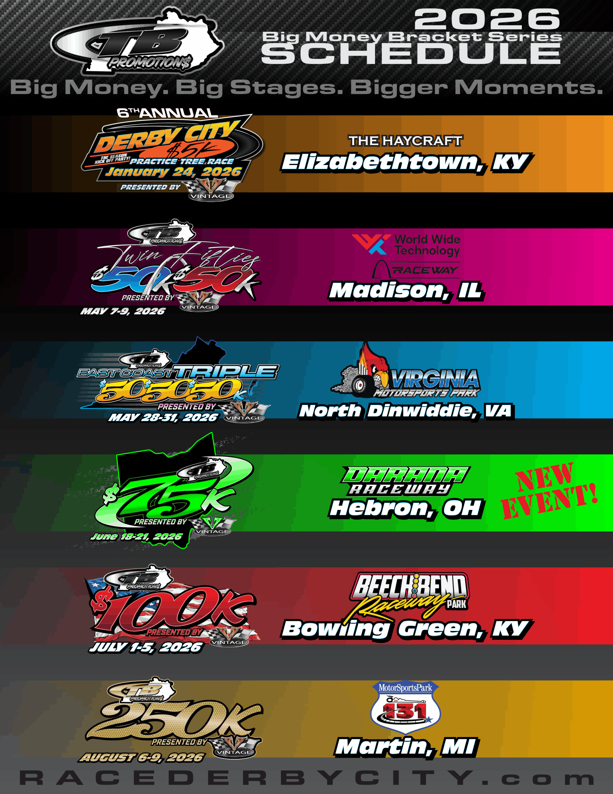 Louisville, KY – Fresh off a record-setting 2025 season, TB Promotions is gearing up for its most electrifying year yet. The 2026 Big Money