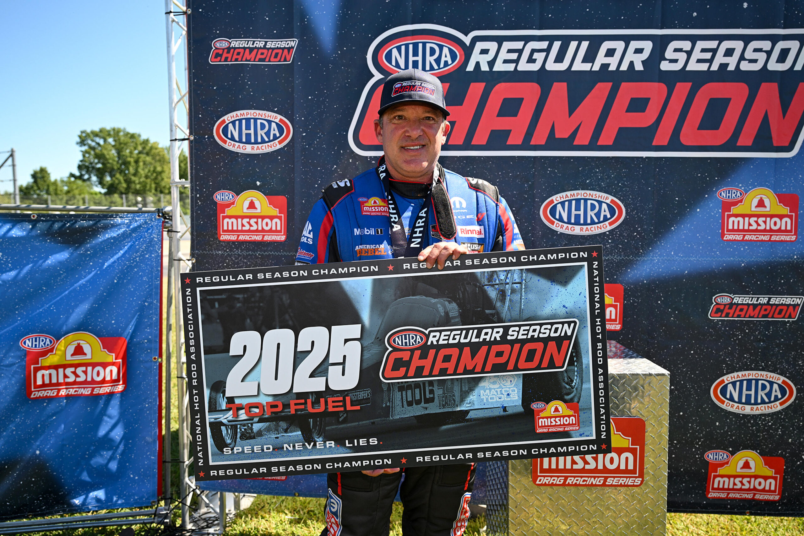Mission Foods Top Fuel regular season points championship Monday with a runner-up finish in his Tony Stewart Racing (TSR) Direct Connection Dodge//SRT dragster at the 71st U.S. Nationals, while TSR teammate Matt Hagan advanced to the quarterfinals in the Funny Car class.