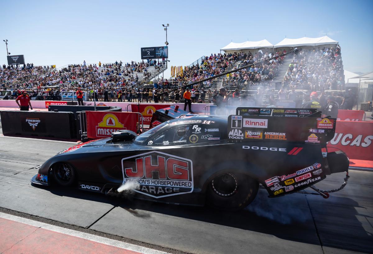 Funny Car on the edge and headed to a “win light” Sunday at the NHRA Arizona Nationals, only to lose by inches to defending World Champion Austin Prock, while TSR Dodge//SRT teammate Tony Stewart advanced to the quarterfinals in the Top Fuel class.