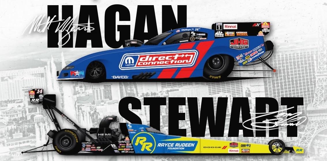 Coming into Las Vegas, Stewart is fifth in the Top Fuel standings, 100 points behind leader Shawn Langdon. Hagan is third in the Funny Car standings, 74 points behind leader Jack Beckman.