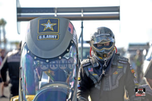 While the coveted Top Fuel world championship was clinched at the penultimate event two weekends ago at Las Vegas by the season’s winningest and most consistent performer Steve Torrence, the U.S. Army drivers hit Southern California with plenty to race for as they’ll jockey for final finishing positions in the Countdown to the Championship playoff standings.
