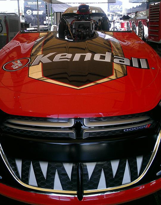 V Gaines and the guys on the Kendall Motor Oil Pro Stock team are looking to hear the thunder late in the day on Sunday that’s for sure. The new Kendall Motor Oil Dodge Dart has been a little….”Tricky” but good things are right around the corner.
