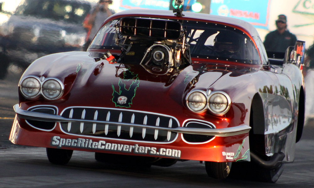 Over the 2010-2011 winter offseason, Rod took drastic steps to lighten his car from the 2,800+ pound brick it was to stay at the top of the pack with rumors going around of everyone stepping up their game with new cars, new combos and the new teams expected to join the group in the upcoming 2011 season. He worked with Richard Earle of Advanced Fiberglass Concepts (who designed and built the body for his 1958 Corvette) to build a new lightweight and more aerodynamic front end. Once the new front end arrived it was off to Bunker Race Cars to have it mounted and to have some more work done to remove unnecessary weight.