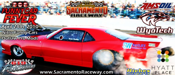 Sacramento, Ca – With the 2010 season about to start for the West Coast Outlaw Pro Mod Association, teams are getting ready for the first race of the year; the Funny Car Fever at Sacrament Raceway Park on April 23-24 hosted by 619 Promotions. The Funny Car Fever will be the first big event of the 2010 season not only for the West Coast Outlaw Pro mod Association but it will also be Sacramento Raceway’s first big event of 2010 and the first (of 2) events that 619 Promotions will be hosting this year. Sacramento Raceway has also had some track updates done to the starting line surface over the last few weeks and many racers say that it is the nicest that Sacramento Raceway’s track/starting line has ever looked.