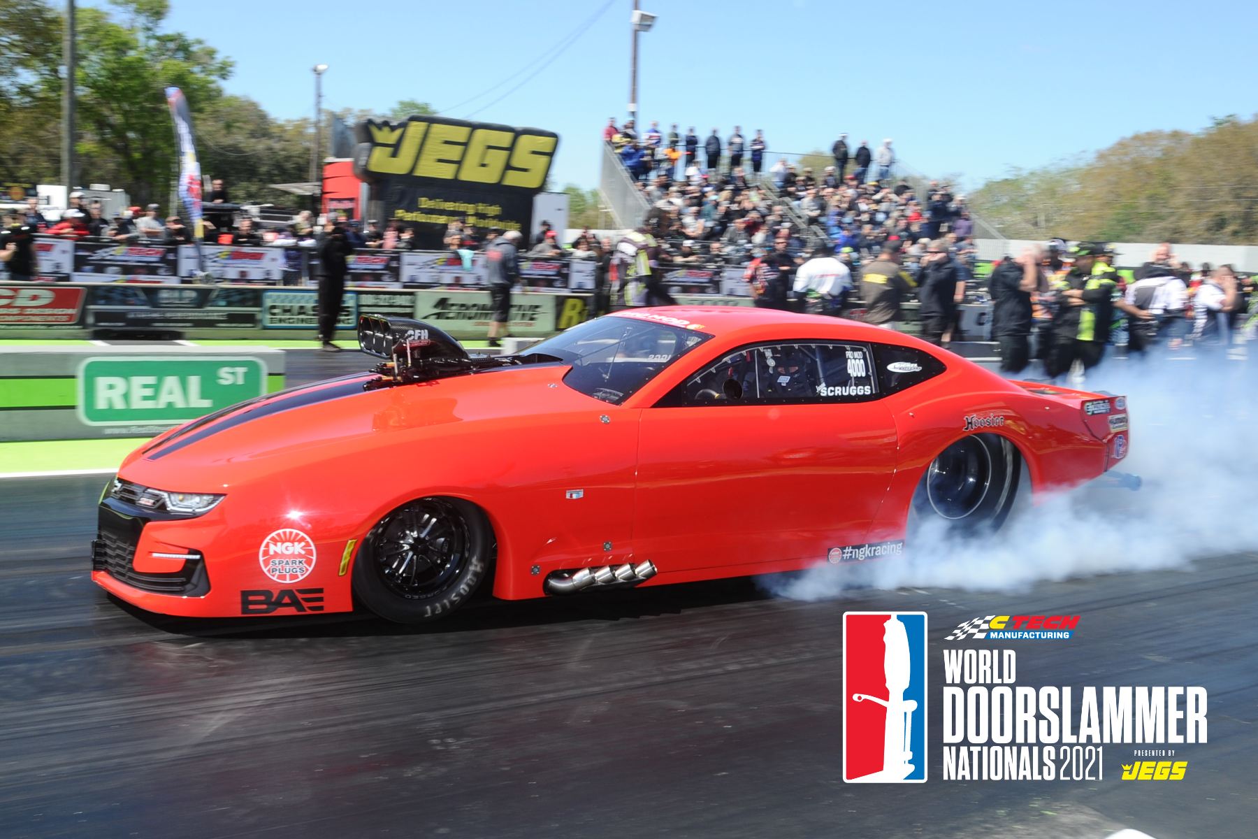 In 2020, Scruggs was one of the heavy hitters at the World Doorslammer Nationals, which pays $50,000 to the winner in Pro Mod. He qualified No. 2 with a stout 5.656-second pass in his roots-blown ’20 Camaro, then set low E.T. of first round with a 5.671 to beat 2018 NHRA Pro Mod world champion Mike Janis. Scruggs’ weekend ended in the second round.