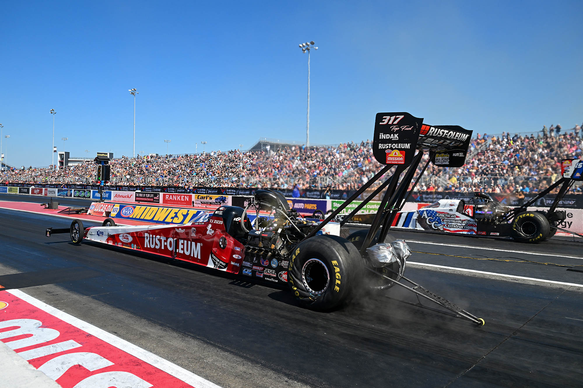 ST. LOUIS – The driver of the Rust-Oleum Top Fuel dragster, TJ Zizzo, isn’t in the 2025 Mission Foods Drag Racing Series Countdown, but