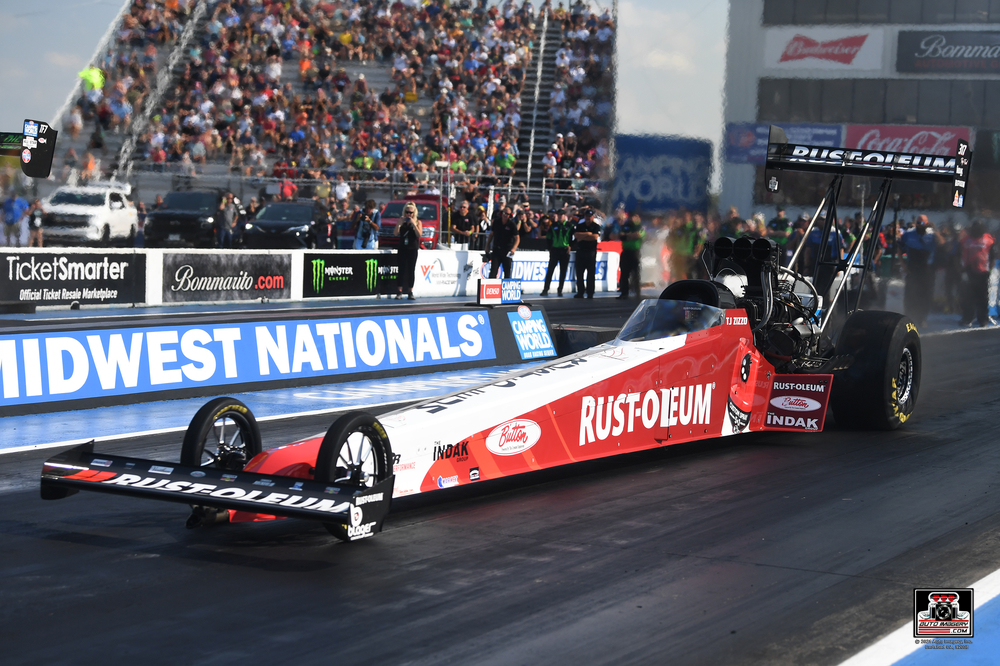 CHICAGO, IL – For TJ Zizzo and the Rust-Oleum Top Fuel dragster team, the Dodge Power Brokers U.S. Nationals is business as usual. The