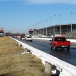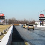 Incredibly, Blair obliged without hesitation. On Saturday morning, December 28, 2013, Blair put his crew into action to open the facility which had been shuttered for the season seven weeks earlier. Friends and fellow competitors arrived three hours prior to the 2:00 PM event and awaited the approaching funeral procession. When the caravan arrived at the track, more racers assisted in organizing over one hundred procession vehicles in the staging lanes while the Nova, the Camaro and the hearse were lined up in front of the timing tower. Hundreds more folks parked and found a seat in the grandstands before a brief eulogy was presented over the public address system. After a moment of silence, the “plan” was unleashed.