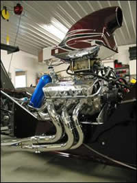 The Gueguen car is a Chrome-Worx Performance Products – Signature Series product with an American Race Cars chassis. Presently the car is running a 598-cubic inch Advanced Product Design (APD) engine using a Nitrous Oxide Systems setup with a Barry Grant fuel system. An Abruzzi Racing Transmissions Real Deal Powerglide sits behind the engine.