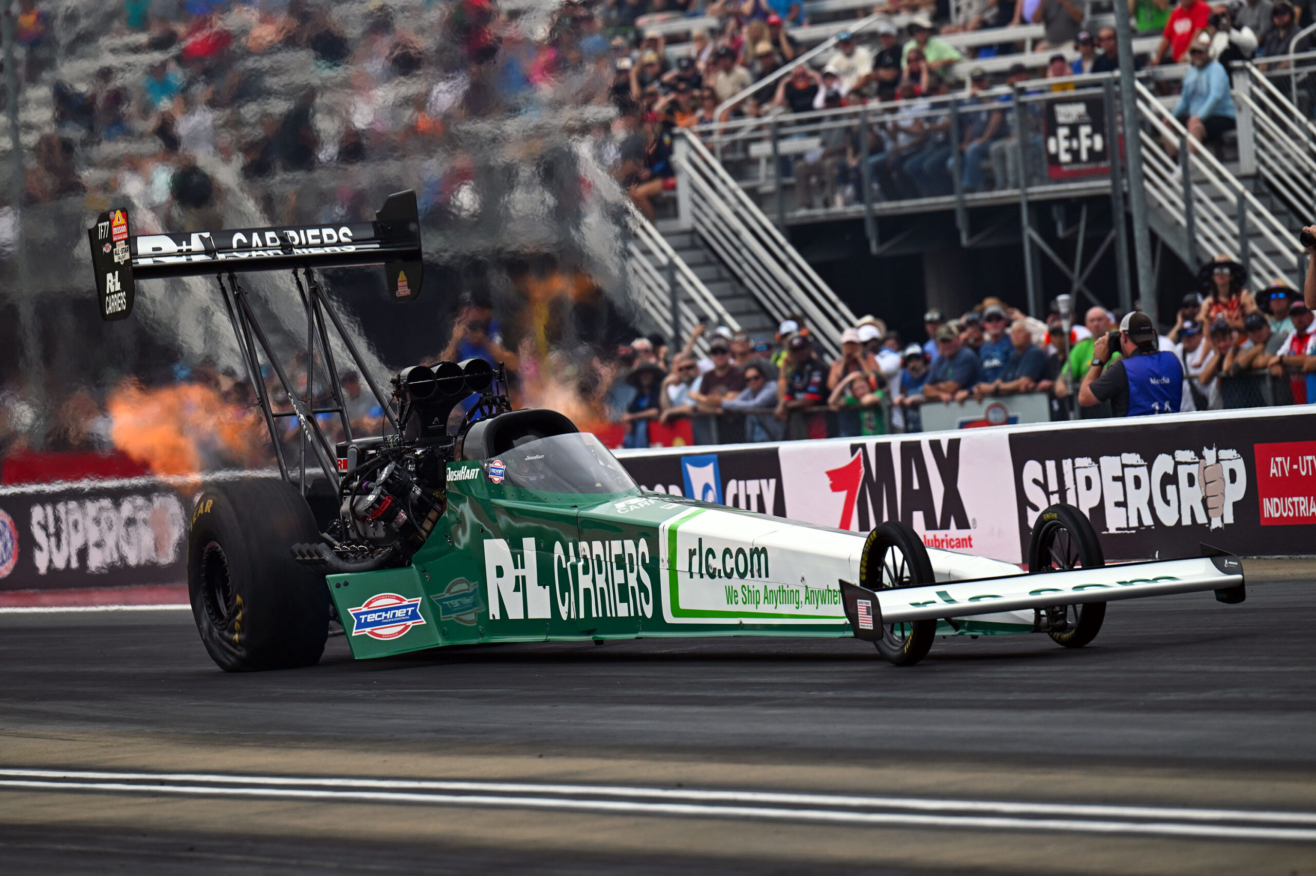 On race day Hart, the No. 10 qualifier, was matched up with Billy Torrence, who Hart was looking to defeat for the first time in three attempts. The R+L Carriers Top Fuel team was half of the last pair of 12,000-horsepower Top Fuel dragsters to close out the first round. Hart was first off the line but Torrence moved around him as the Top Fuel dragsters approached halftrack. Each of the land rockets blasted across the finish line with Torrence getting to the stripe first posting the fastest speed of the event, 331.45 mph.