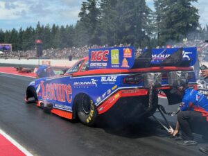 quickly put their nitro Funny Car back together during the Muckleshoot Casino Resort NHRA Northwest Nationals at Pacific Raceways after a trip into the sand trap in the second round of qualifying. Their solid pass was strong enough to keep them in the show against a competitive field for the rest of qualifying, leading them to face No. 2 qualifier Matt Hagan on race day.