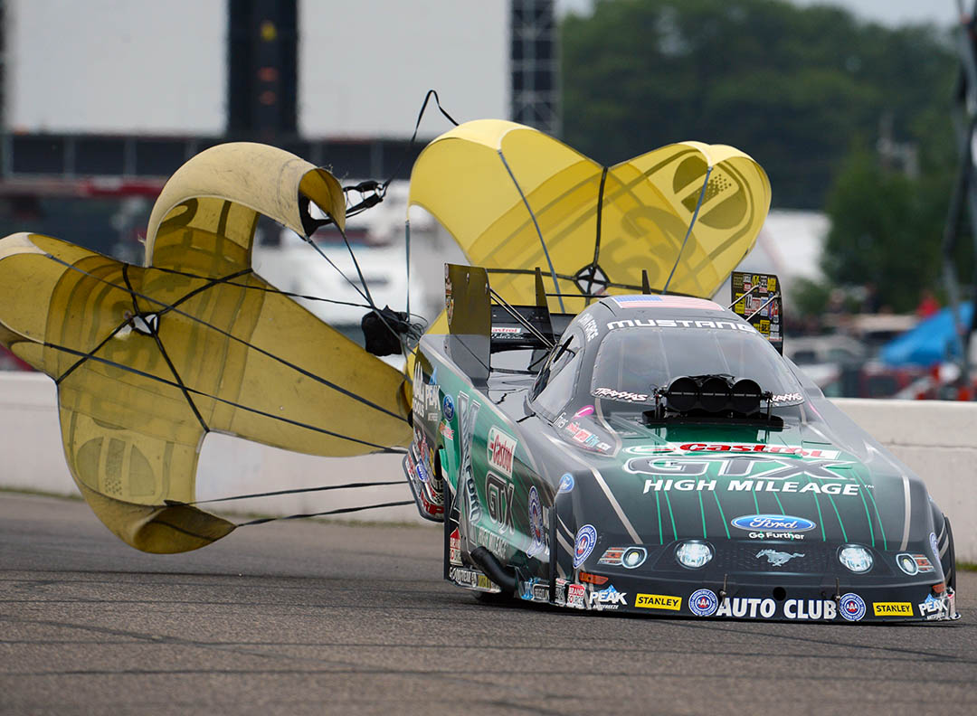 BRAINERD, MN – John Force and his Castrol GTX High Mileage Mustang will have to wait two weeks to see if he will claim his fourth