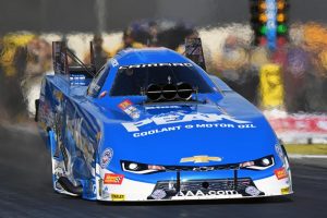 Force – driving the Advance Auto Parts Chevrolet Camaro SS – set the 3.849-second time Friday, with a speed of 330.23 mph. While she was second after Friday’s qualifications, her father and team owner, John Force, matched her time Saturday, and set a speed of 335.15, the second-fastest speed in Funny Car history. That dropped Force to No. 3.