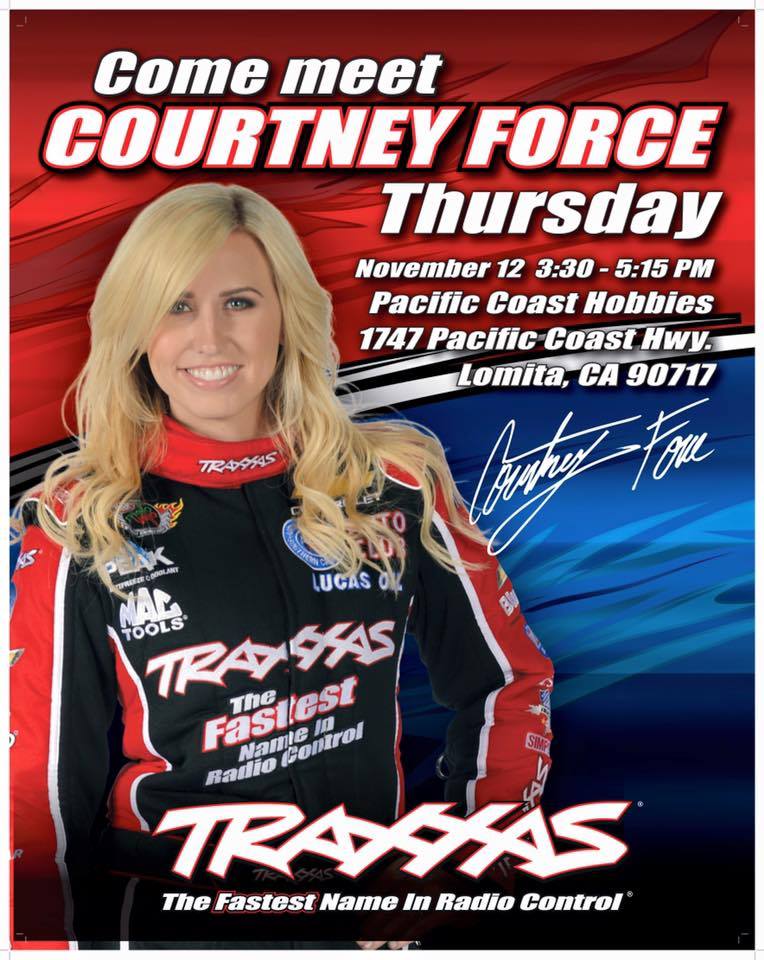 On Thursday afternoon fans of Traxxas and Courtney Force can meet the 2012 Rookie of the Year at Pacific Coast Hobbies (1747 Pacific Coast Hwy, Lomita, CA, 90717) from 3:30 p.m. until 5:15 p.m. Right after this appearance fans can head over to LaVerne and see the NHRA stars at Lordsburg Taphouse (2335 D. Street, La Verne) for the NHRA FanFest. Enjoy food and drink specials, car displays and meet John Force, Robert Hight, Brittany Force, Courtney Force, plus many other NHRA stars from 7 p.m. until 8 p.m. Robert Hight’s Auto Club Chevy Camaro SS Funny Car will be on display.