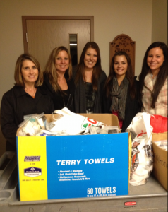 John Force Racing has spent the last month between races packaging individual kits at the company headquarters in Brownsburg, Ind., less than 15 miles from Sheltering Wings. The kits donated include unused hotel amenities from the team’s travel throughout the year. A total of 500 kits were put together by office staff and contained soap, shampoo, conditioner, body wash, lotion, make-up remover pads and mouth wash.