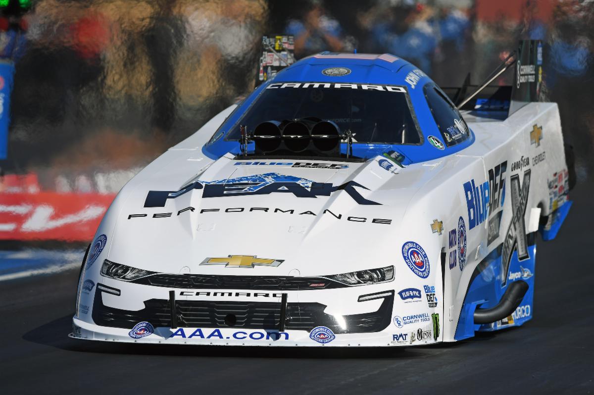 POMONA, CA – John Force and the PEAK / BlueDEF PLATINUM Chevrolet Camaro SS team aren’t letting their recent points bump to No.