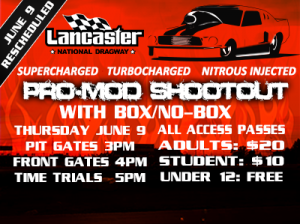 Lancaster National Dragway Moves Pro Mod Shootout to Thursday, June 9
