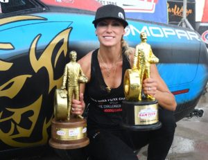 ENNIS, TX – Leah Pritchett clinched the 2018 SAM Tech NHRA Factory Stock Showdown Series championship in her Mopar Dodge Challenger Drag Pak at the AAA Texas NHRA FallNationals, racing to her third consecutive win of the season and earning her first championship in her first full year competing in the class.