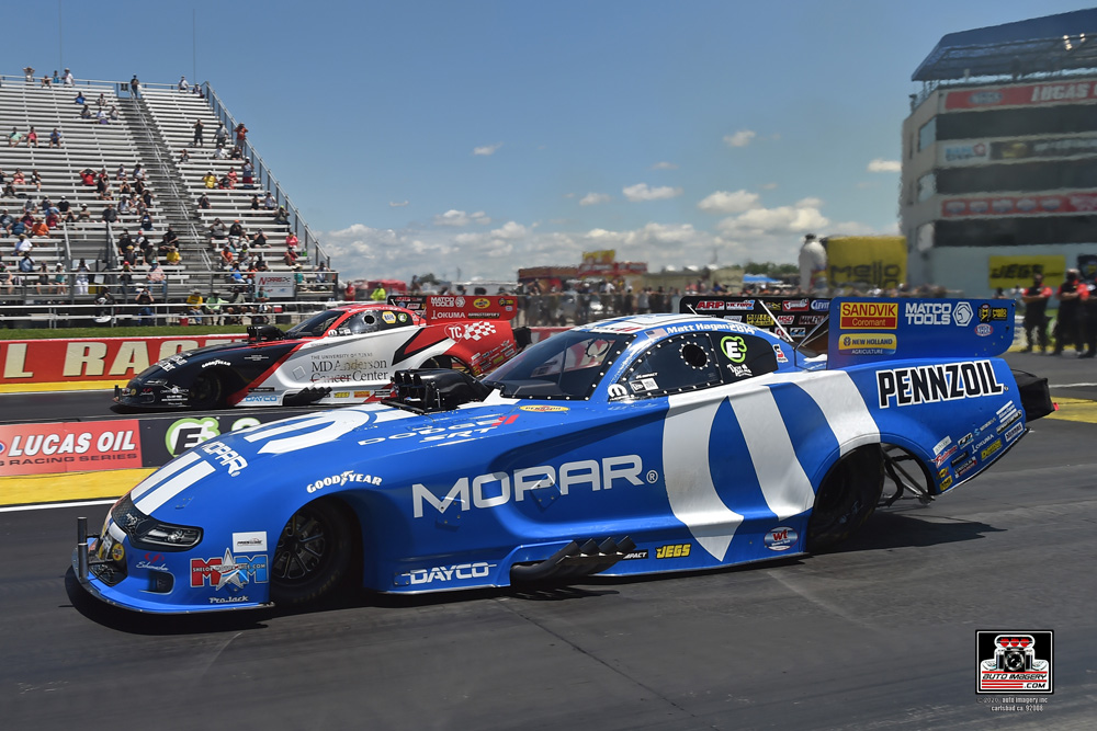 Hagan began his march to the Indianapolis winner’s circle by qualifying his Mopar Dodge Charger SRT Hellcat sixth to lock-in lane choice over his first-round opponent, Dan Wilkerson. Hagan’s quick reaction time earned him the immediate starting line advantage and he never trailed for the win, clocking a 4.025 E.T. to secure lane choice over point leader and 2020 season-opener victor, Jack Beckman. It was a nail-biter of a race between the two former world champions, with Hagan crossing the finish line in 3.949-seconds, narrowly defeating Beckman’s 3.969-second effort.