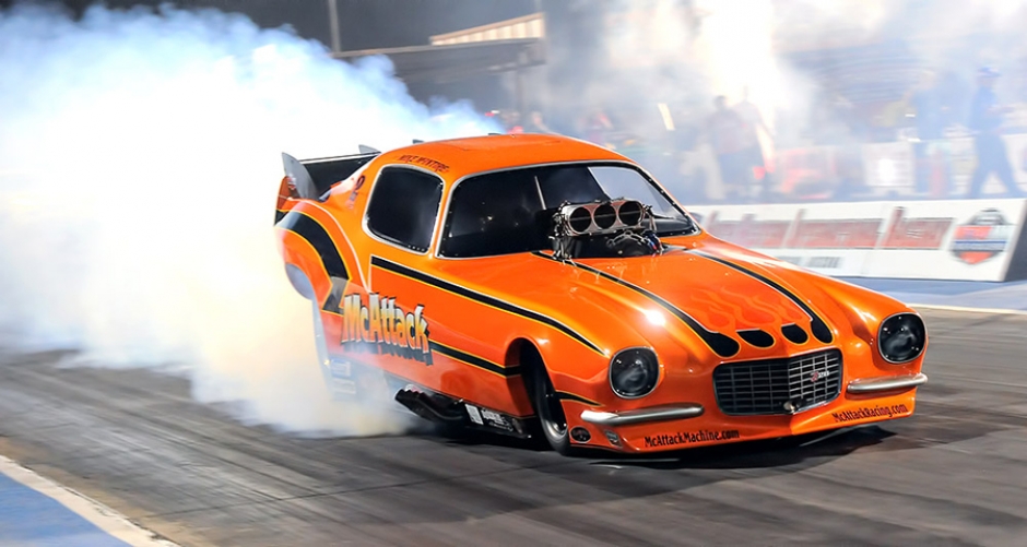 AMSOIL NITRO FUNNY CAR: McIntire, of Mentor, Ohio, set a new IHRA Nitro Funny Car world record when he made a blistering pass of 5.680 seconds (256 miles per hour) in his new “McAttack” second-generation Camaro during the third round of qualifying and backed it up with a run of 5.708 seconds (251.06 miles per hour) during the second round of eliminations.