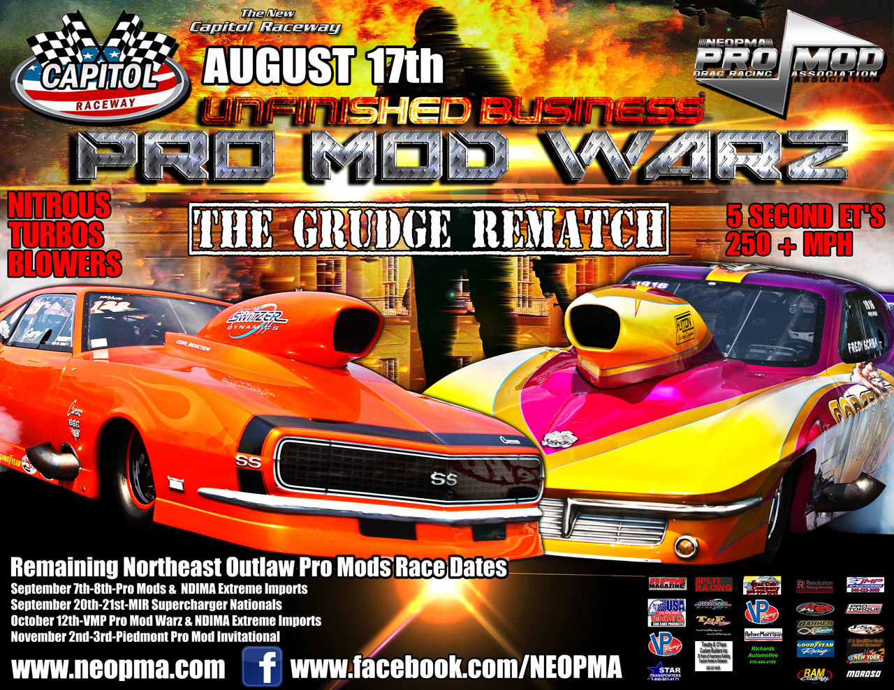 The NEOPMA would like to thank all the sponsors below, Pro Mod Teams and Crews, Tracks and Fans who support the ¼ Mile Pro Mod series