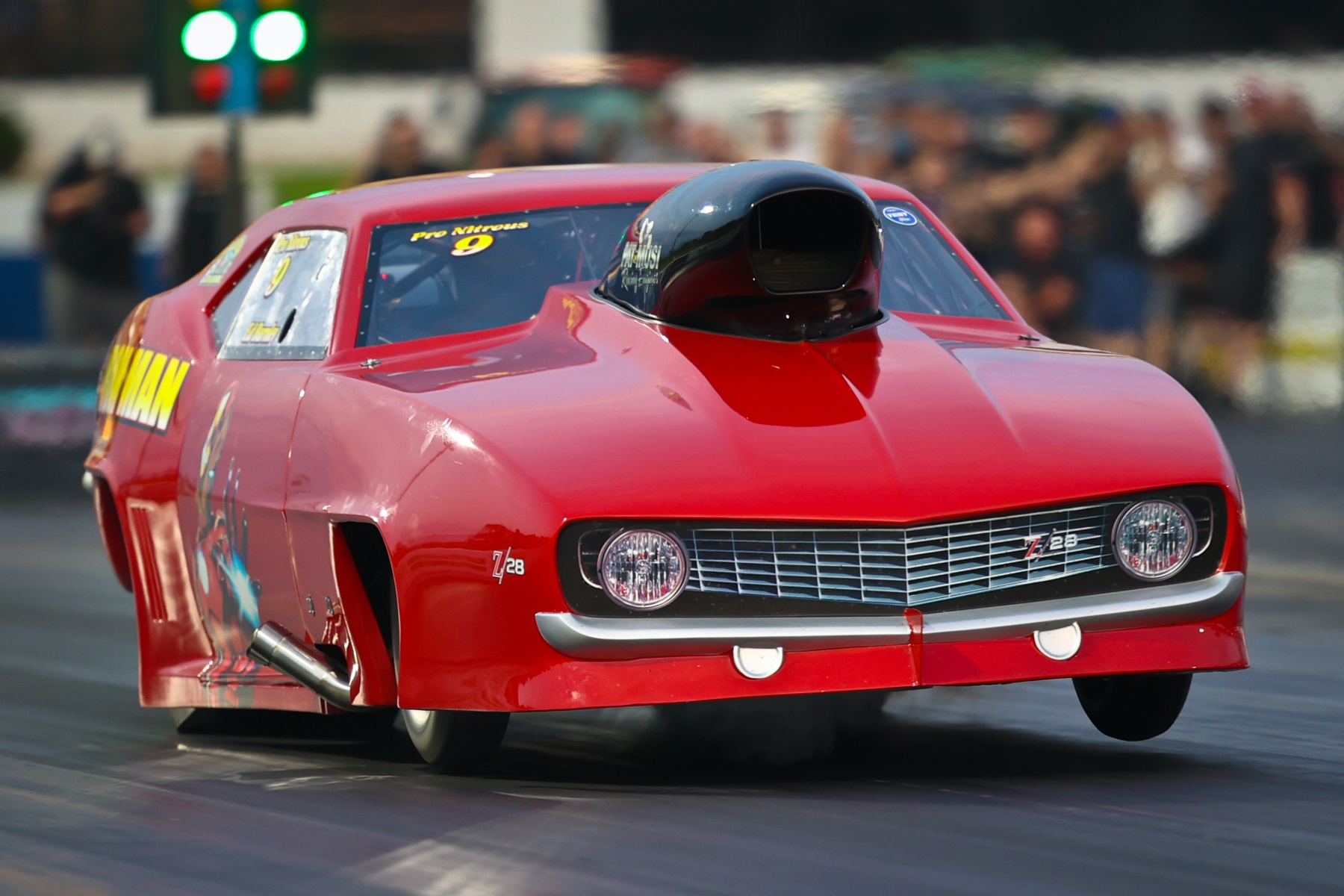 In Menscer Motorsports Pro Street presented by Afco, which was competing in the ProStars event for the first time, Bill Lutz set low E.T. of the event in the first round to take his screw-blown ’68 Camaro to the final round. He was due to race points leader Bill Riddle in his roots-blown Corrigan Race Fuels ’89 Camaro.