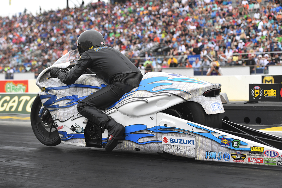 The former Pro Stock Motorcycle world champion feels perfectly at peace at the high-stakes race in the city of big lights, even if it does serve as the penultimate race in the NHRA Mello Yello Countdown to the Championship. Savoie has always performed well in Las Vegas on his White Alligator Racing Suzuki and with a pair of playoff wins, the veteran, who is 94 points behind points leader Andrew Hines, plans to once again thrive at the facility.