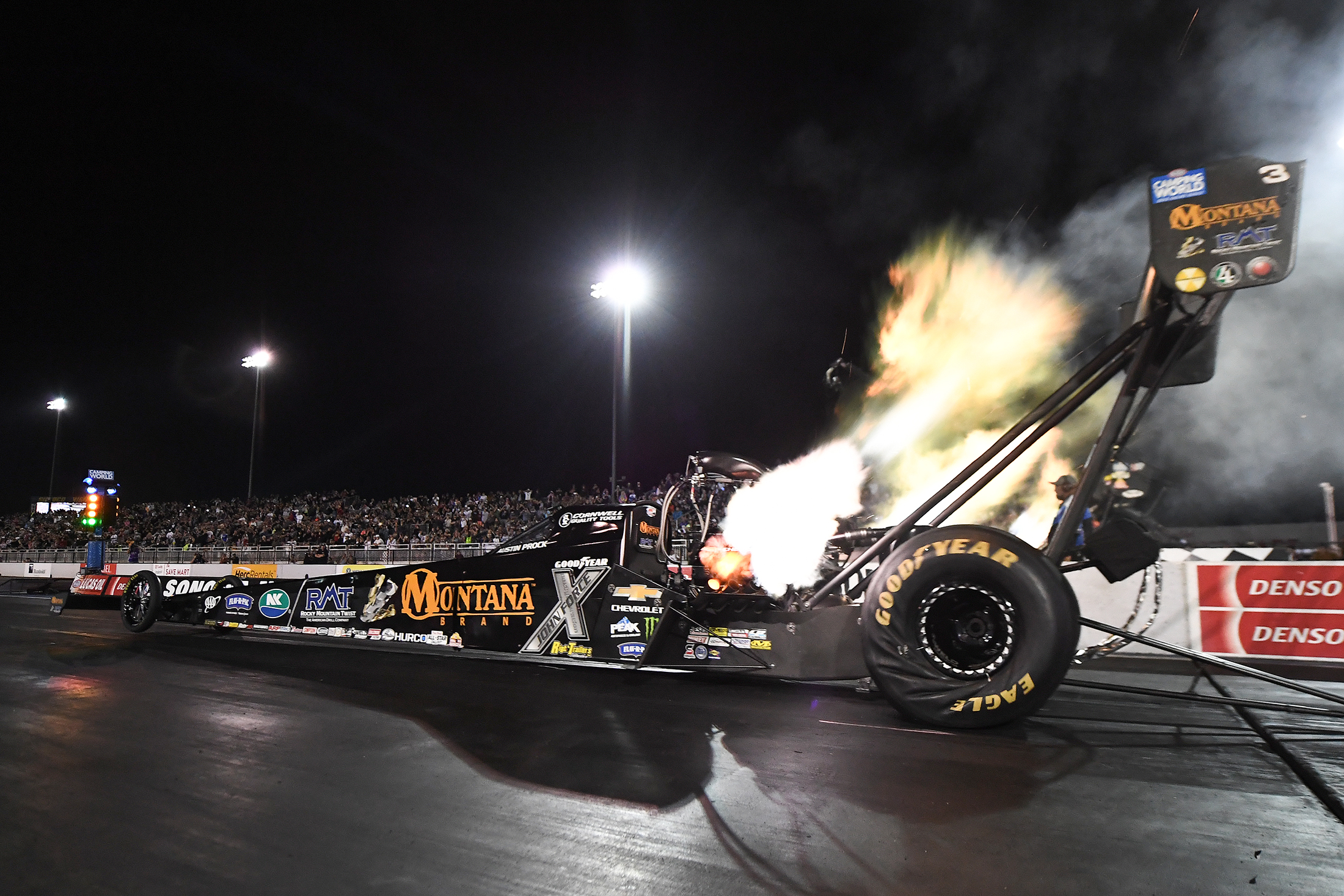 “I haven’t been that quick in a while,” Prock said. “I love working with this team and I have not had much success on the Western Swing in my career. I was very proud of what we did tonight. We dropped a cylinder on the first run and I was pretty mad. But I knew we were going to go up there and make a good run, and it rebounded nicely.