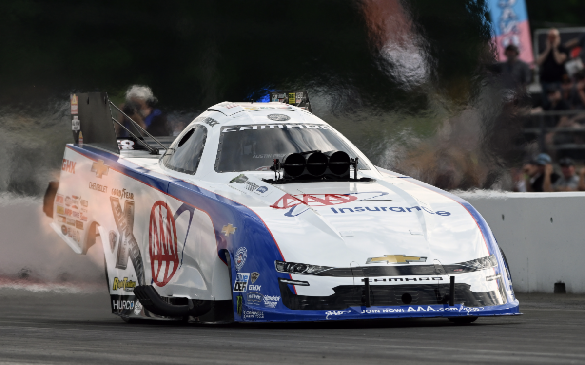 EPPING, NH – Funny Car rookie Austin Prock drove the AAA Chevrolet Camaro SS through the 1,000-foot timers in 3.837 seconds at 336.23