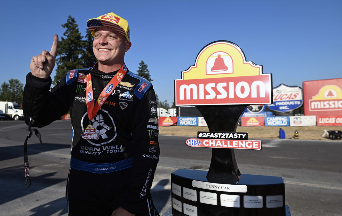 in the final round to win Saturday’s Mission #2Fast2Tasty NHRA Challenge, a prelude to the 35th NHRA Northwest Nationals at Pacific Raceways.