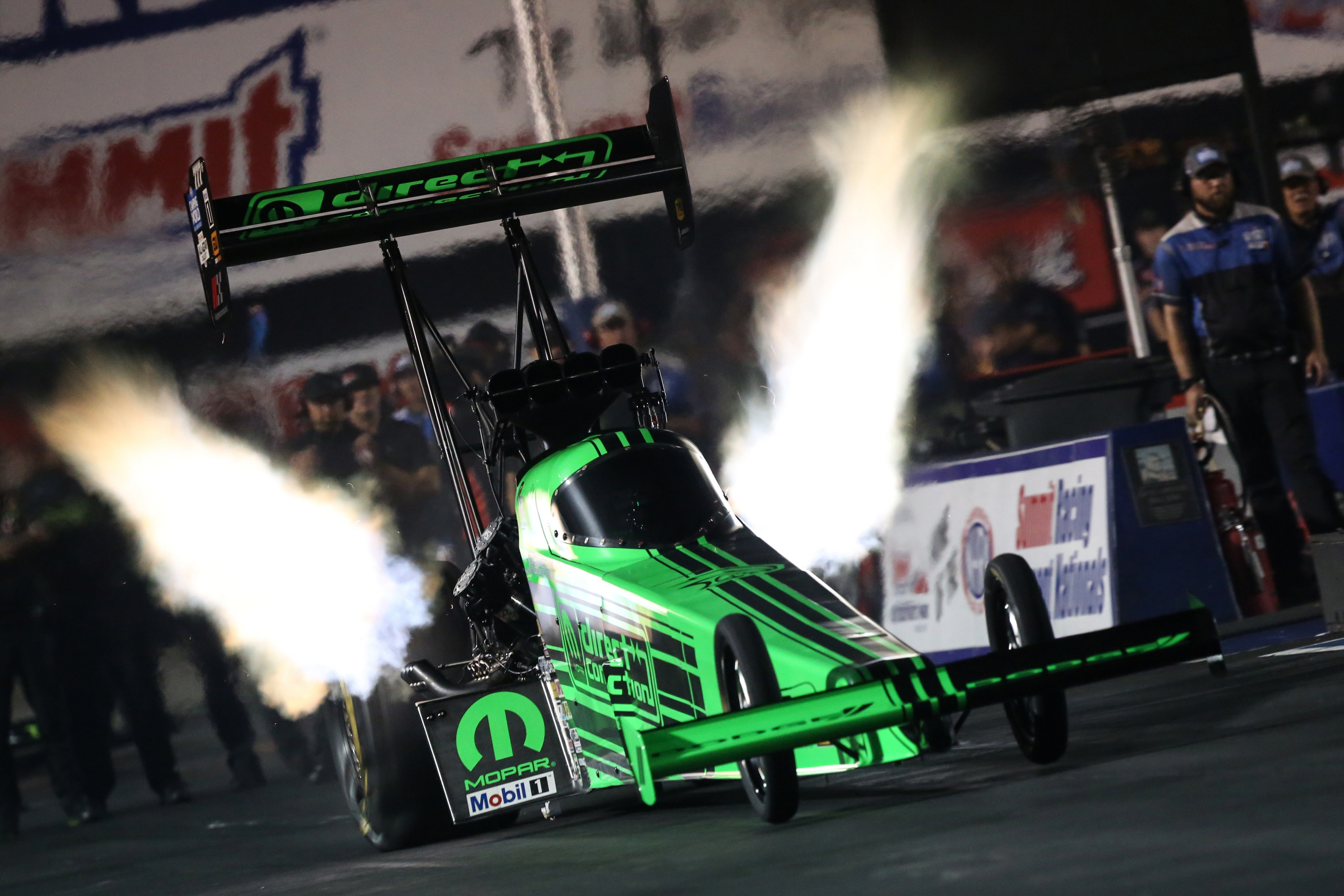 “There’s no feeling like when you get that text that says Funny Car at 9 p.m. At that moment, everyone that’s been wiping down the car and checking their notes for hours, at that moment you kick into high gear and turn it on. The fans got a good show tonight.”