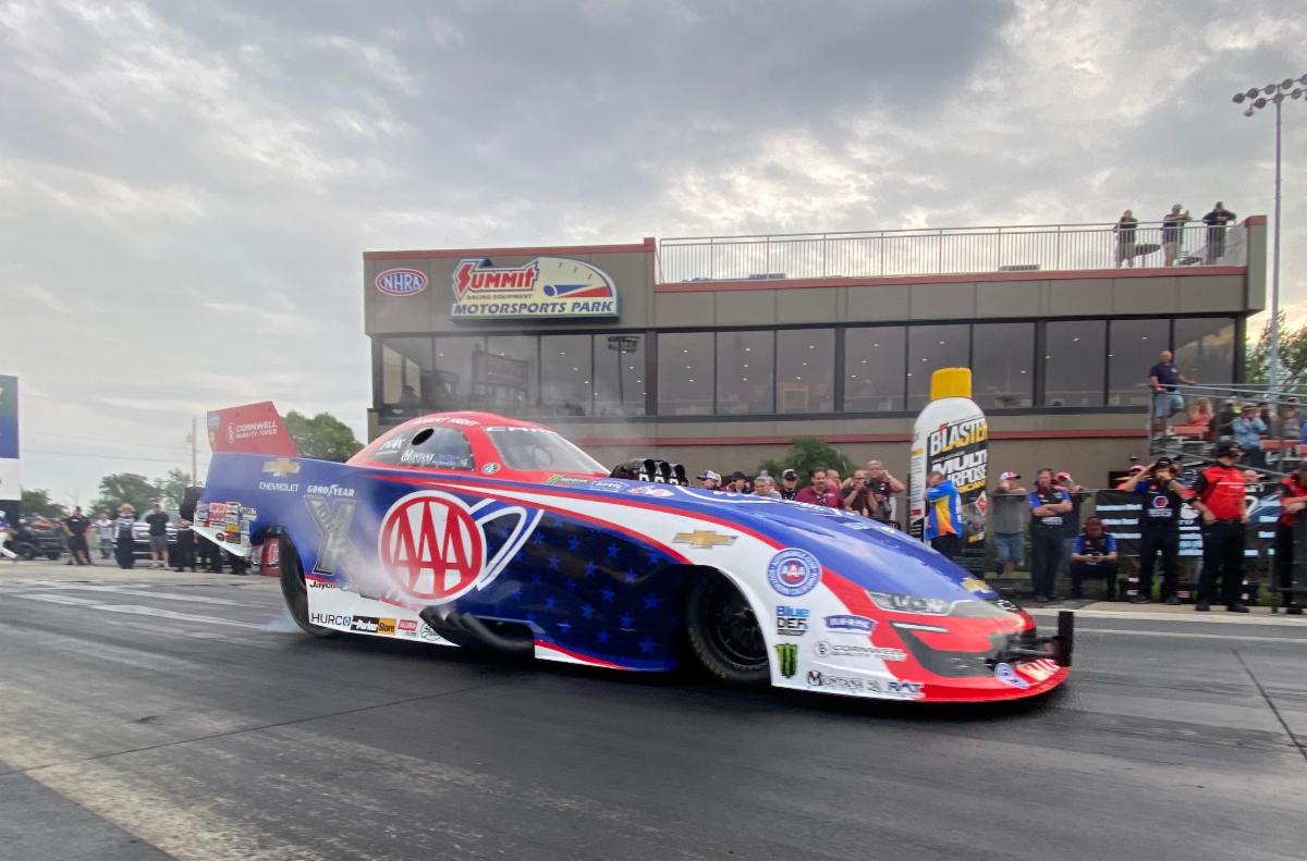 Coming off a victory at the NHRA New England Nationals, John Force and the PEAK / BlueDEF Chevrolet maintained their performance when they ran a 3.928-second pass at 326.71 mph to open qualifying at Summit Motorsports Park. The solid run puts him fourth in the qualifying order with two runs to go.