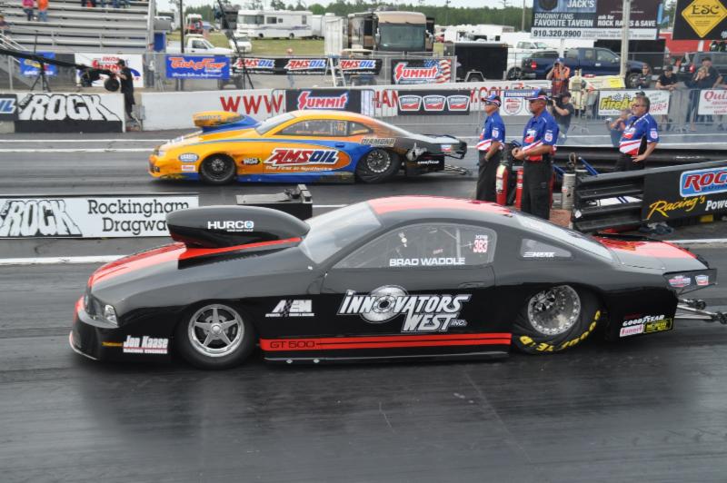 Sunday’s other big winner in Rockingham was Salina, Kan. native Brad Waddle. The driver of the Innovator’s West 2013 Ford Mustang Mountain Motor Pro Stock overcame a weekend full of challenges on his way to his first career Pro Stock victory over Kevin Bealko. With a much smaller operation encompassed in a three-person crew, Waddle worked his way from last on the ladder to the championship round where he ran the quickest and fastest quarter-mile pass of his career to take home his first career Pro Stock win.