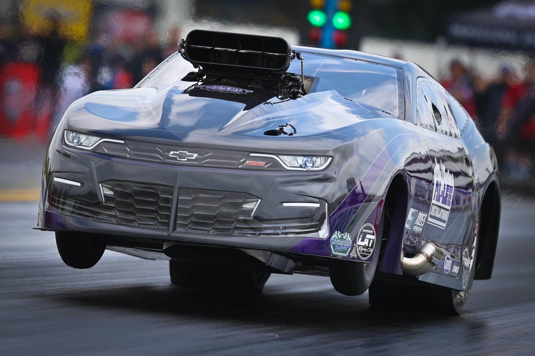 Canadian Pro Mod star Spencer Hyde, who won the 2023 World Series of Pro Mod, fired off a 3.59 at 213.47 in the first session to qualify second in his screw-blown “Jack & The Green Stock” ’69 Camaro. Kurt Steding in his new screw-blown P2 Contracting ’69 Camaro rounded out the top three with his 3.592 at 208.07.