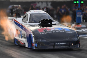 Pruett’s 11-thousand horsepower Dodge//SRT dragster had a clean elapsed time run at 3.796-second, but at 314 mph, she didn’t quite have the speed to beat Salinas’ 3.696 sec./331.20 mph pass. With back-to-back first round exits, Pruett drops two positions in the Top Fuel championship standings to find herself battling for the championship from tenth place, 178 points behind leader Justin Ashley.