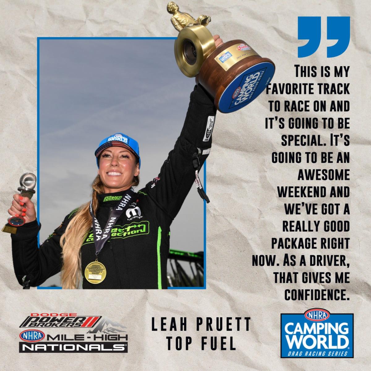 TOP FUEL’S LEAH PRUETT READY TO ROLL AT DODGE POWER BROKERS NHRA MILE-HIGH NATIONALS