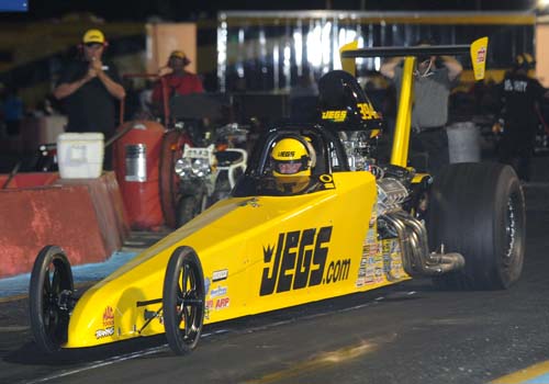 Coughlin was brimming with confidence after driving his JEGS.com dragster to a late round finish during Thursday’s $20,000 warm-up event. Out of a field of more than 450 starters, Coughlin made the final ten but that was the end of his racing luck for the event.