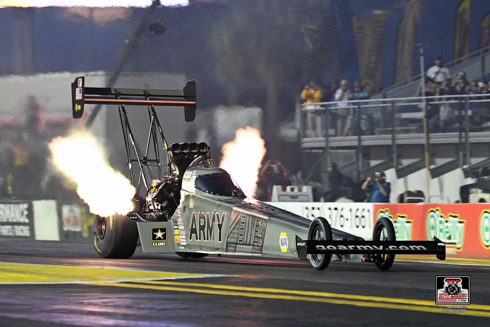 “I love this race,” said Schumacher, the 2017 Gatornationals champion who’s vying for a record sixth Gainesville event title this weekend. “It’s top three for me without a doubt. We just do so well here and that gives us a ton of confidence. The place was sold out today and fans jammed in here to see us do battle. There’s just something about racing here. We’ve won this race more than anyone else (in Top Fuel) and I’m excited to have another chance Sunday. It’s been a long time since we’ve won a race. I’m hungry. This U.S. Army Racing team is hungry. I’d like to get (crew chief) Mike Neff his first Top Fuel win here tomorrow. A year is too long for us to go between wins. We will do everything we can tomorrow to make it a long day and put ourselves in position to win this thing. It’ll take an incredible effort and I’m fortunate to be surrounded by a group of guys capable of the moment. It’s going to be fun. I’m ready.”