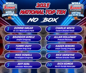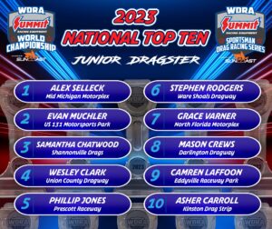 WDRA releases the National Top Ten standings for the Box, No Box, Sportsman, and Junior Dragster classes following the WDRA Summit World Championships presented by SunCoast Performance