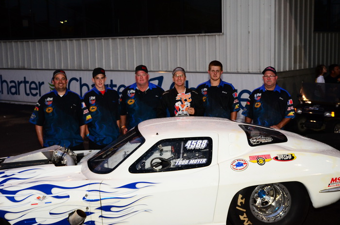 Pro X-Treme low qualifier Brandon Pesz’s ’58 Corvette kept the third driver’s door in two days in place, running a 3.690 @ 204.91 MPH to down Quain Stott’s ’63 Corvette, which ran a losing 3.725 @ 203.25, with identical reaction times. On the other side of the ladder, Tim Tindle’s Mustang outran the Mustang of Todd Tutterow, 3.696 @ 204.57 MPH to Todd’s 3.743 @ 201.70 MPH. The only class which did not finish with an event winner, it will be decided during qualifying at the next event in Maryland.