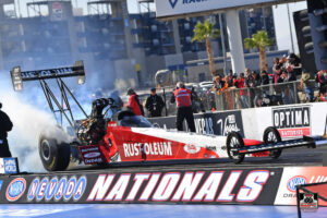 showing at the NHRA Nevada Nationals even if it did not culminate with a trip to the winner’s circle. Making his seventh trip to The Strip at Las Vegas Motor Speedway, Zizzo and the Rust-Oleum Top Fuel dragster team kept his streak alive of qualifying every time he has entered the NHRA national event. After two days of qualifying Zizzo wound up No. 13 and faced championship contender Doug Kalitta in the first round. Zizzo knew he would have his hands full but based on all the changes the team made this season he was up to the challenge.